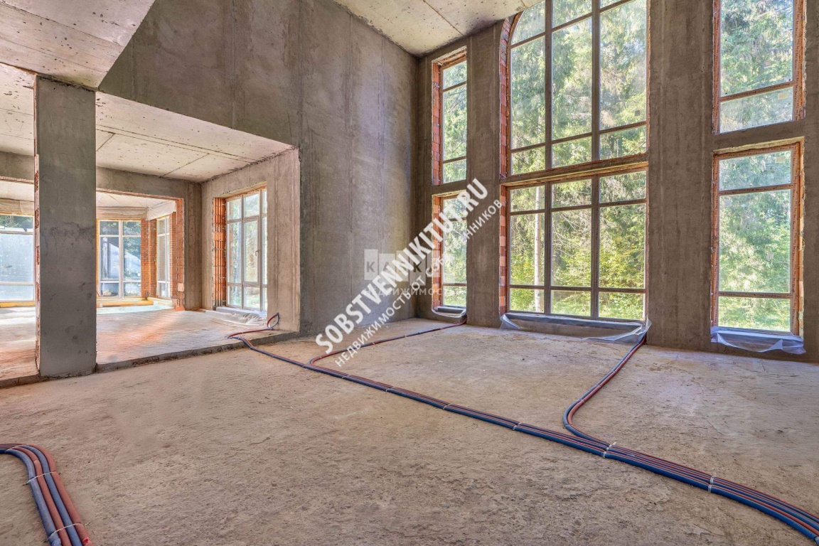 Этот коттедж 850 кв.м. возведен на монолитном фундаменте и имеет прочную каркасную конструкцию. Стены выполнены из керамического кирпича. Крыша покрыта натуральной черепицей.Дом готов к отделочным работам, с уже установленными коммуникациями. Отопительная система основана на высококачественных немецких комплектующих. Планировка дома отвечает самым высоким требованиям современного строительства. С каждого этажа открывается великолепный вид на лес.