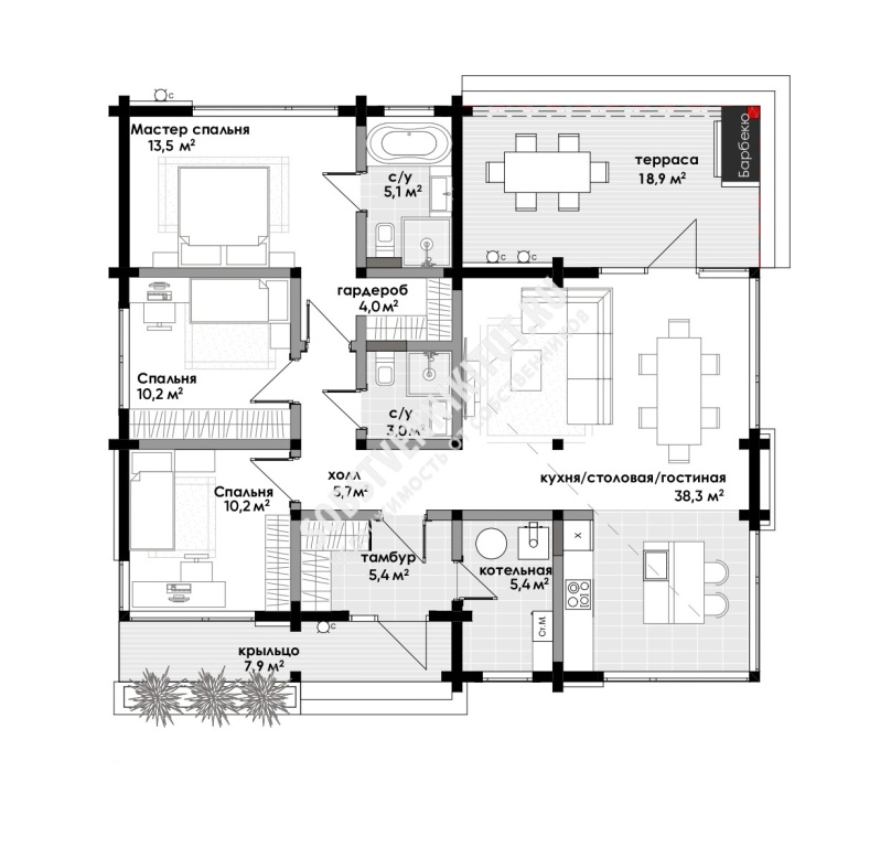 Площадь — 120 м2 общая