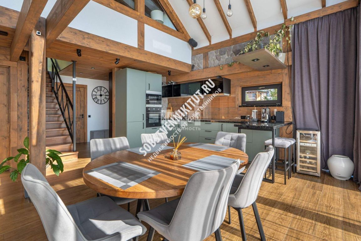 Построенный в 2022 году, дом возведен по технологии фахверк с использованием исключительно высококачественных и энергоэффективных материалов. Архитектура дома выполнена в современном стиле с большими панорамными окнами, которые гармонично вписываются в естественный природный ландшафт, подчеркнутый деревянными элементами. Внутреннее пространство дома отличает дорогая дизайнерская отделка, мебель и бытовая техника от лучших мировых производителей.