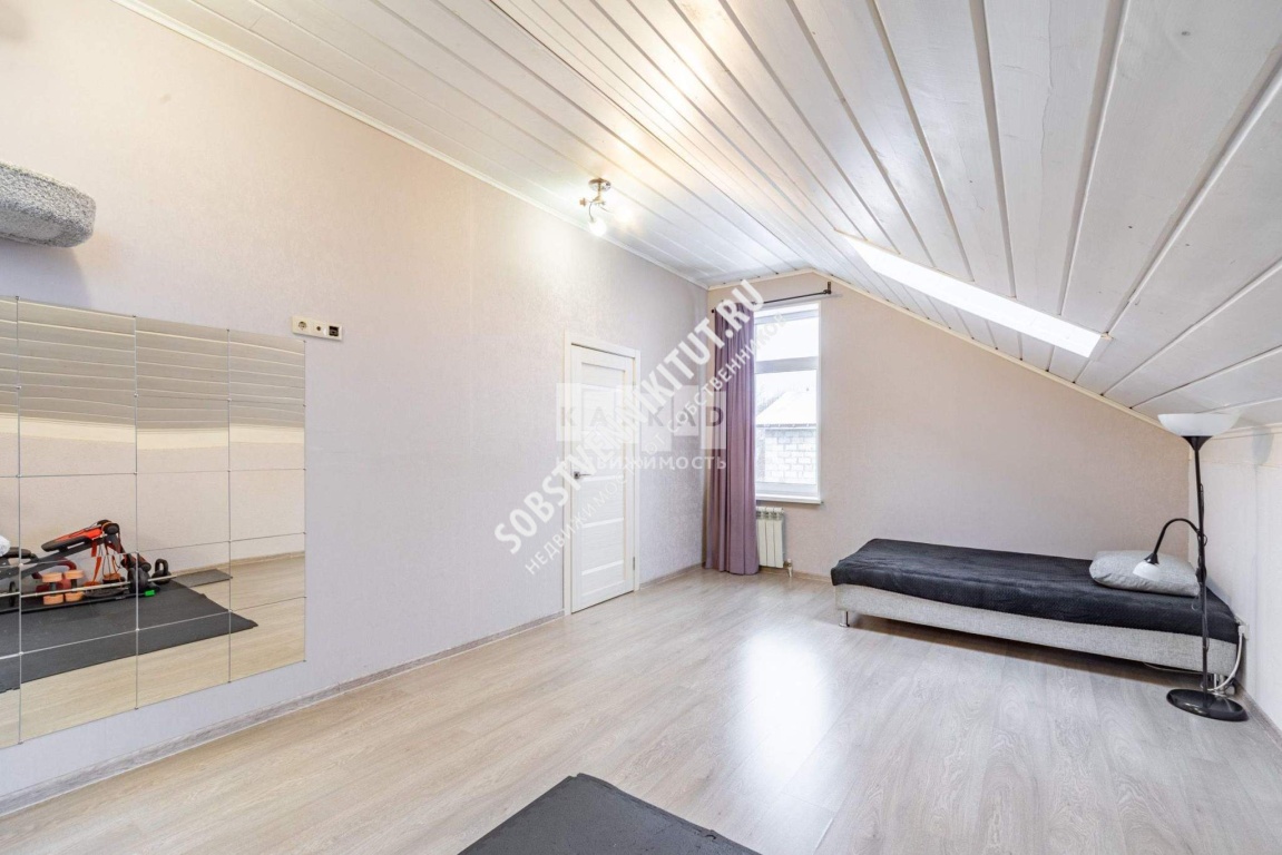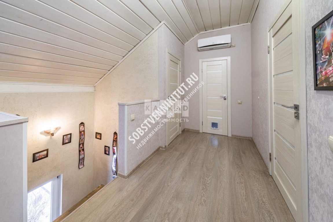 Ванная комната (7 м2) с ванной и душевая кабина, есть доп. комната - 5 м2 (можно использовать в качестве кладовки, либо сделать сауну) . Санузел - 1,4 м2 . Коридор - 5,5 м2 с дополнительным выходом во двор. Бойлерная - 5 м2, с отдельным входом с улицы, все коммуникации подключены. На второй этаж ведет стильная каркасная лестница.