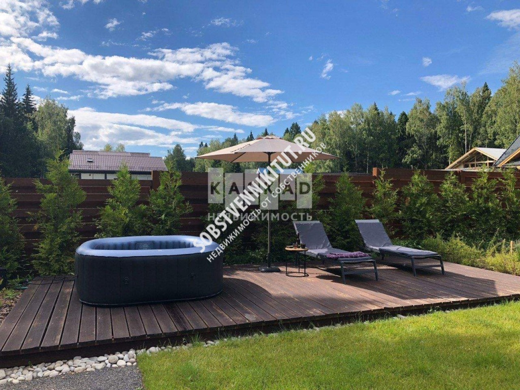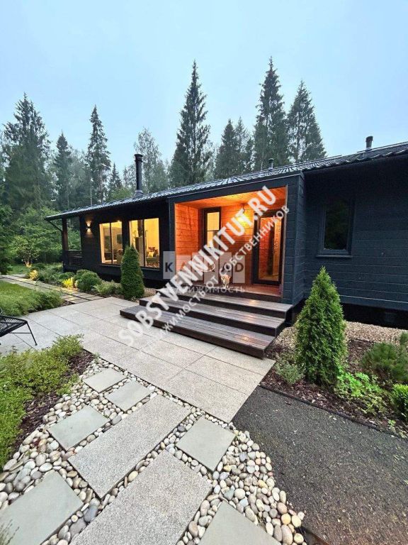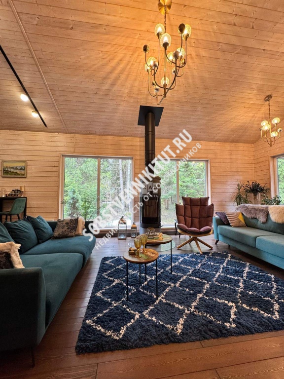 В доме имеется просторная кухня - гостиная 45 кв. м с камином из талькомагнезита и терраса с зоной столовой и лаунж зоной с видом на пруд и лес, две спальни, кабинет , прихожая, просторная душевая с отдельным санузлом.