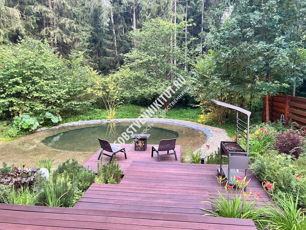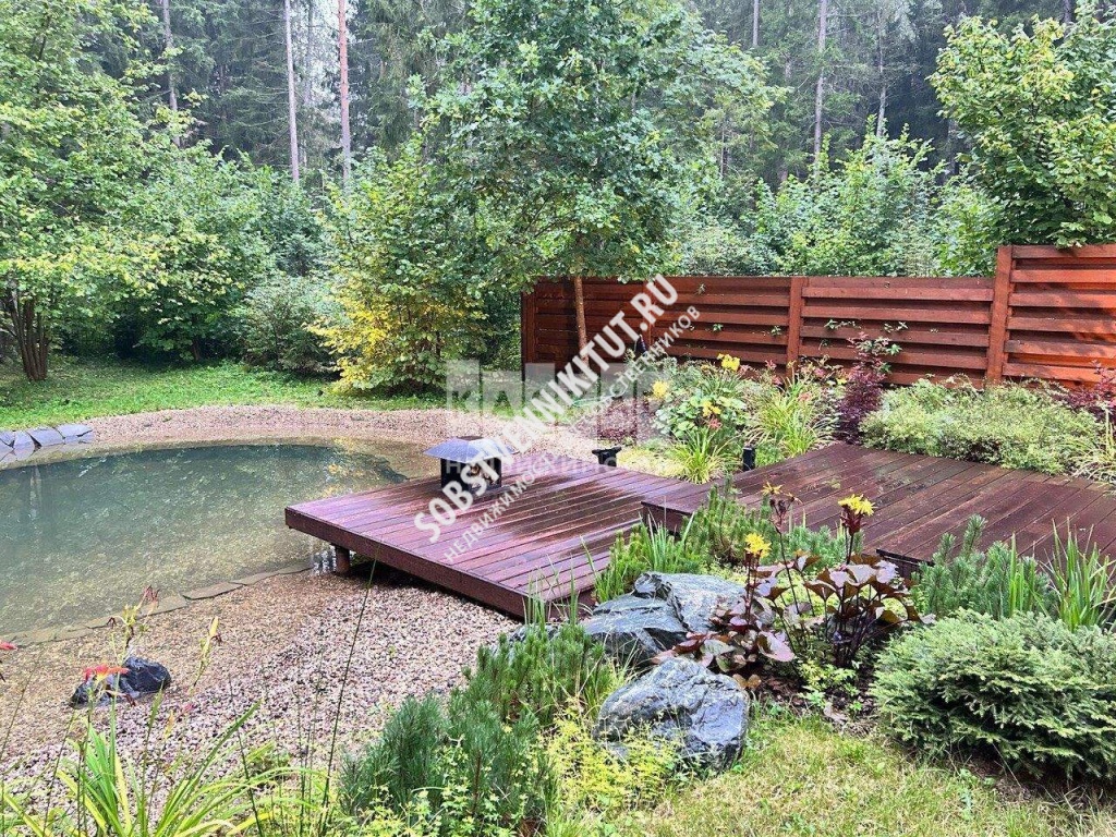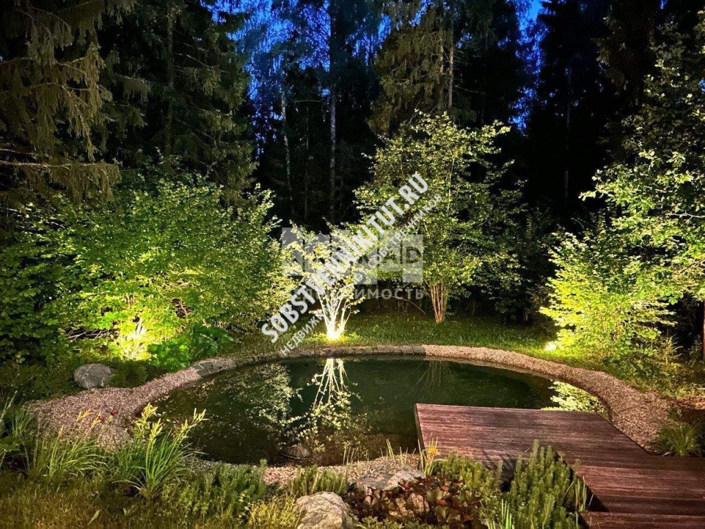 На участке имеется два пруда , дренажная система , зона солярий джакузи подогревом и гидромассажем , лежаки . Масса деревьев , цветов и кустарников. Полностью сделано освещение участка и въездной группы , красивый фронтальный забор и облегчённый забор 3Д к лесу .