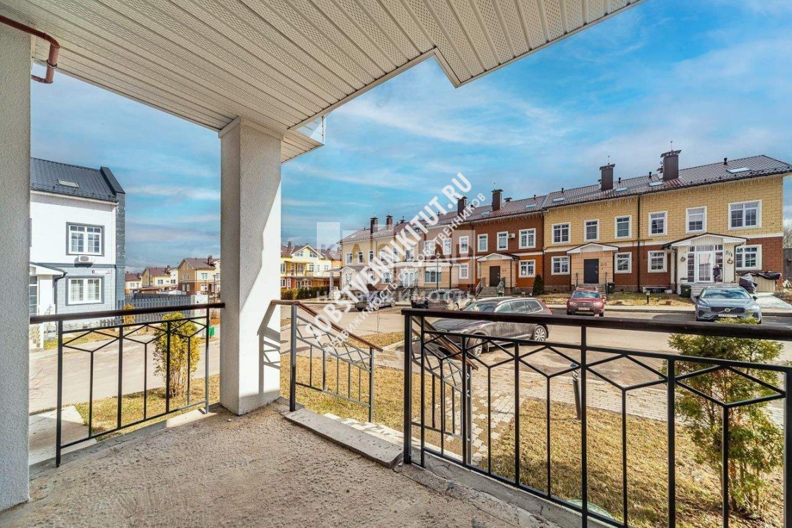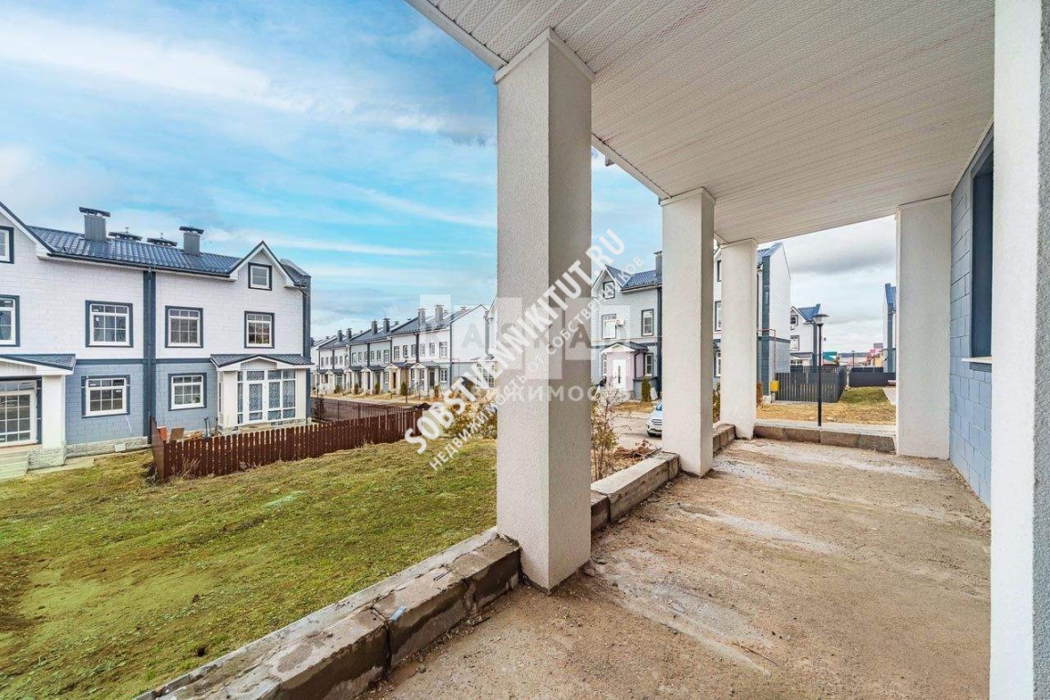 У таунхауса есть приусадебный участок, где можно построить детскую площадку, организовать зону барбекю или установить бассейн. Территория участка 2,5 сотки, имеет правильную форму, участок выровнен с газонным покрытием. Выход на террасу в сторону заднего двора, а над террасой располагается балкон с выходом на втором этаже. Перед входной группой таунхауса асфальтированное парковочное место на две автомашины.