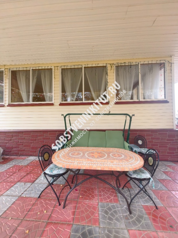 К дому примыкает закрытая веранда с котельной; открытая терраса, оформленная диким виноградом.
