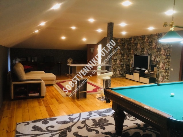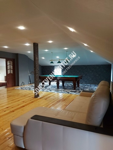 Остается вся дорогая мебель, встроенная техника, тренажеры и стол для биллиарда.