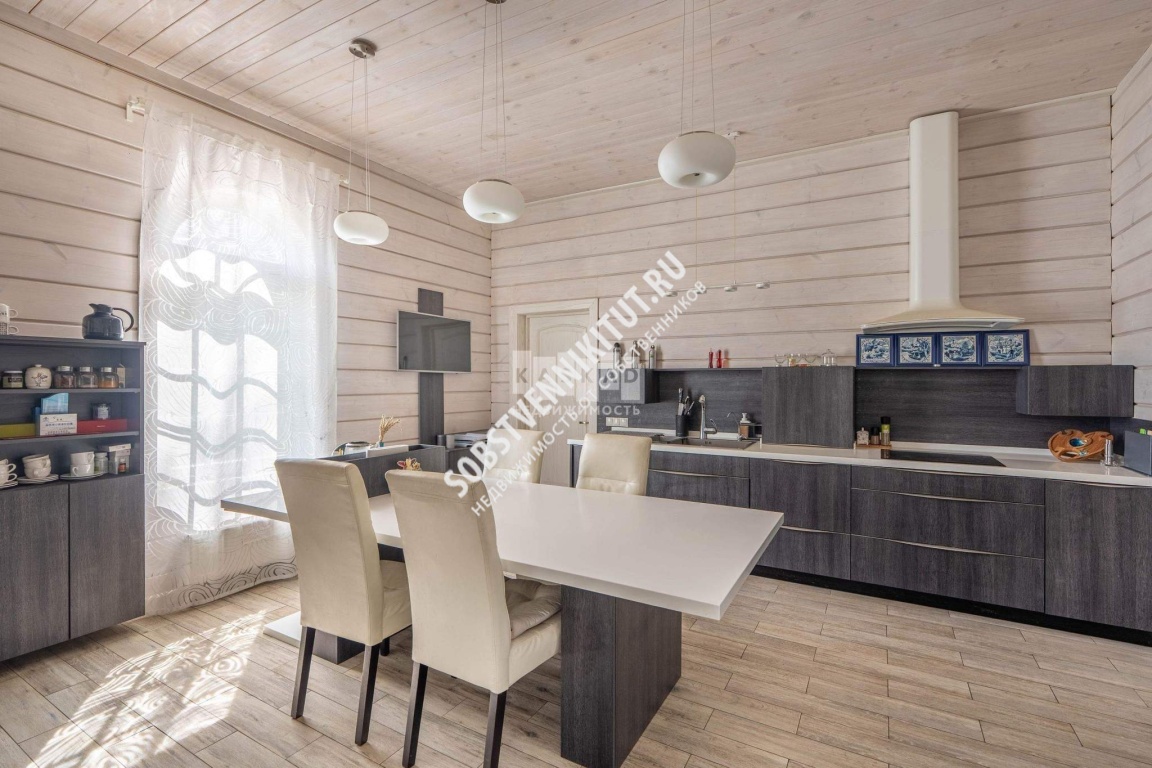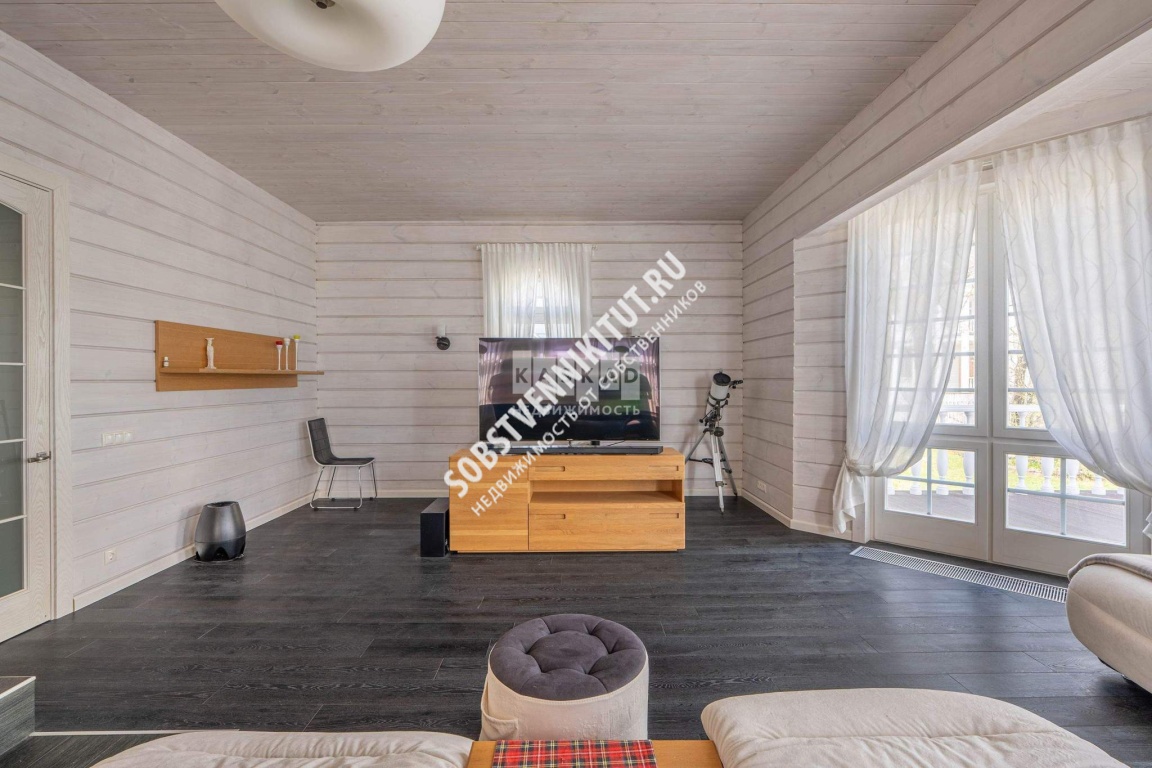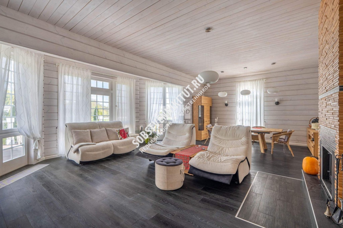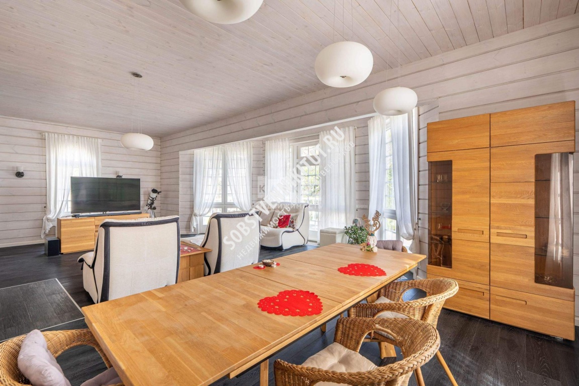 Этот стильный и современный дом площадью 400 м построен из клееного бруса, что обеспечивает экологичность и комфортный микроклимат. Светлая цветовая гамма интерьера создает ощущение простора и легкости.