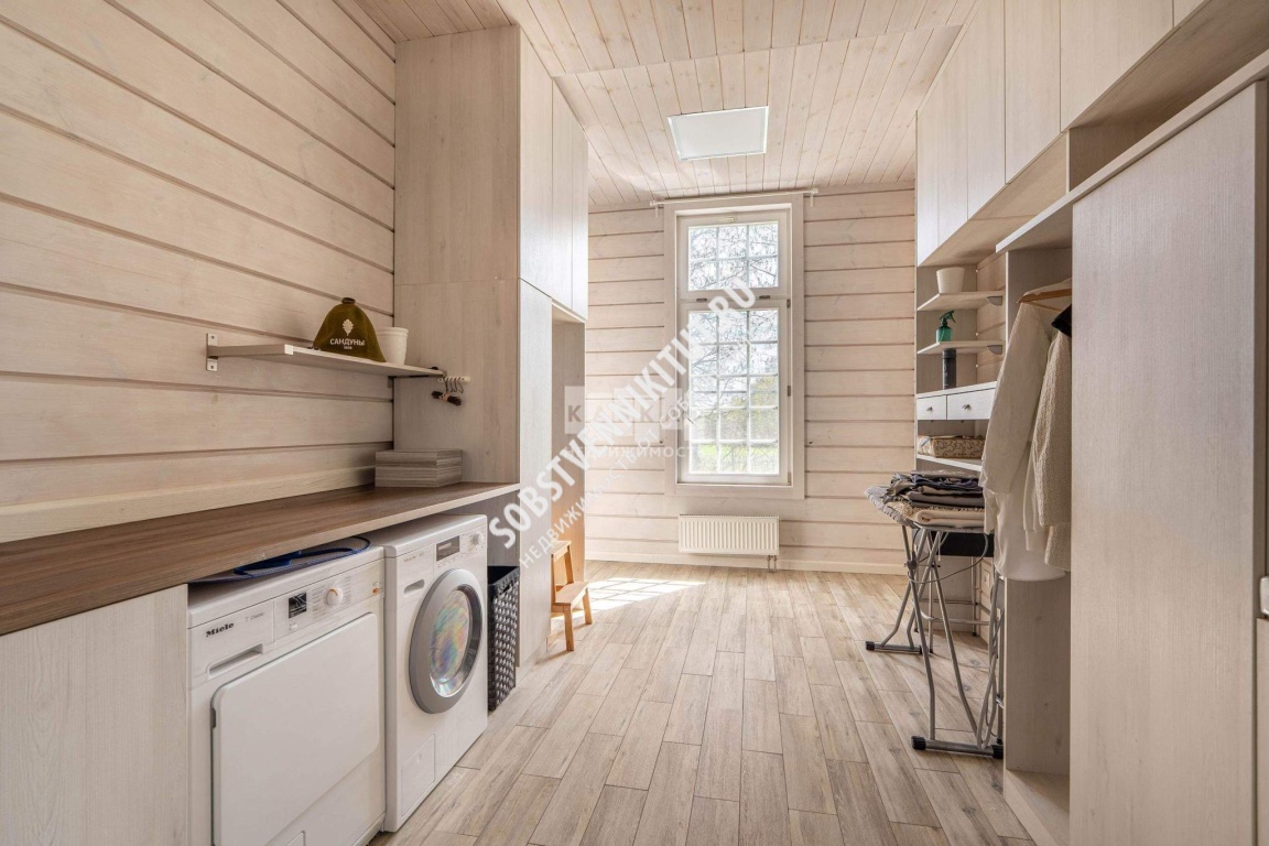 1 этаж: прихожая, холл, гардеробная, кухня-столовая, гостиная-каминная с выходом на террасу, постирочная, гостевая спальня/кабинет, санузел, спортивный зал, котельная;