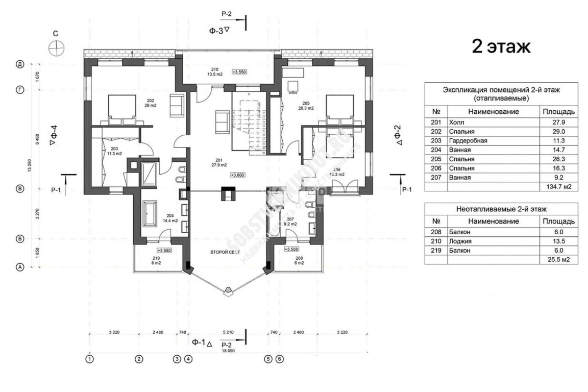 2 этаж: мастер-спальня со своим санузлом, спальня, санузел, детская спальня со своим санузлом.