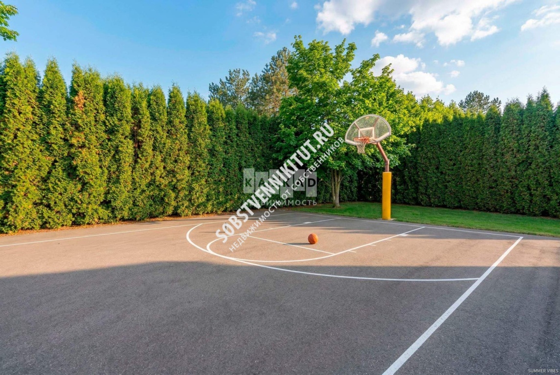 Участок площадью 30 соток - настоящий оазис красоты. Ландшафтный дизайн поражает своим разнообразием: декоративные кустарники, цветущие клумбы и элегантный гранитный фонтан создают атмосферу умиротворения и роскоши. Дополнительная баскетбольная площадка позволит поддерживать активный образ жизни.