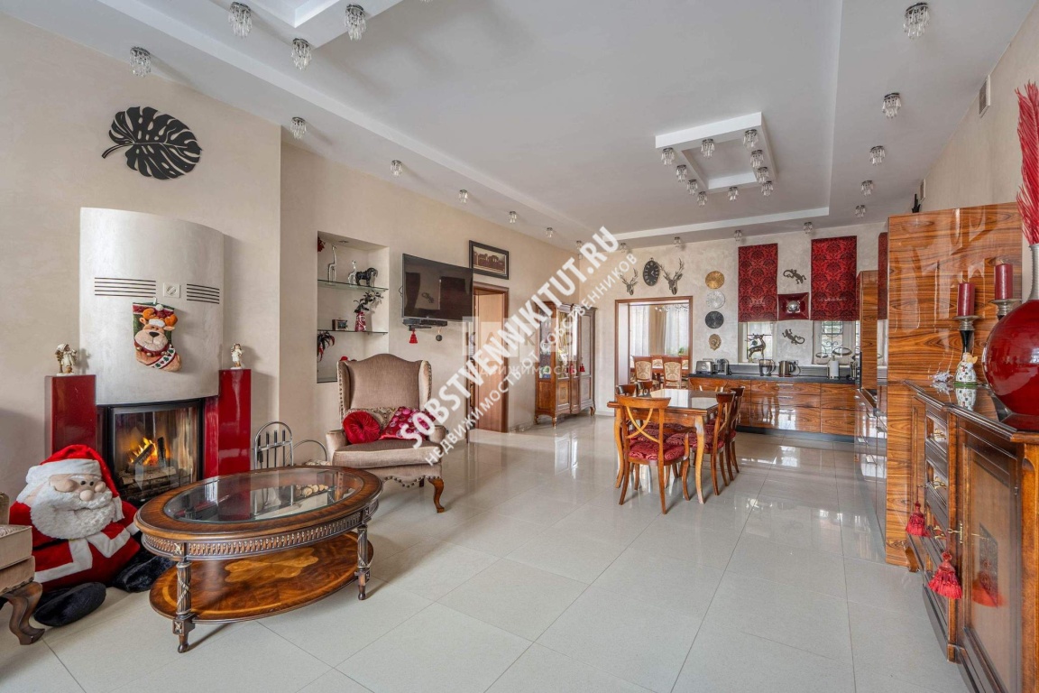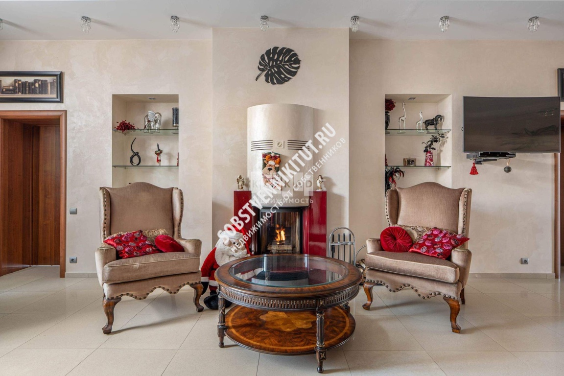 Роскошный дровяной камин французского производства становится сердцем гостиной, даря тепло живого огня и создавая неповторимую атмосферу уюта.