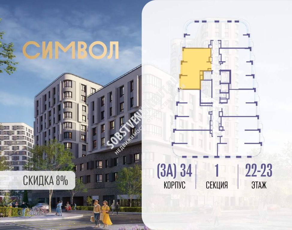 Продажа двухкомнатной квартиры 55.2м2 за 32678400 руб на Москва и Московская область на СобственникиТУТ