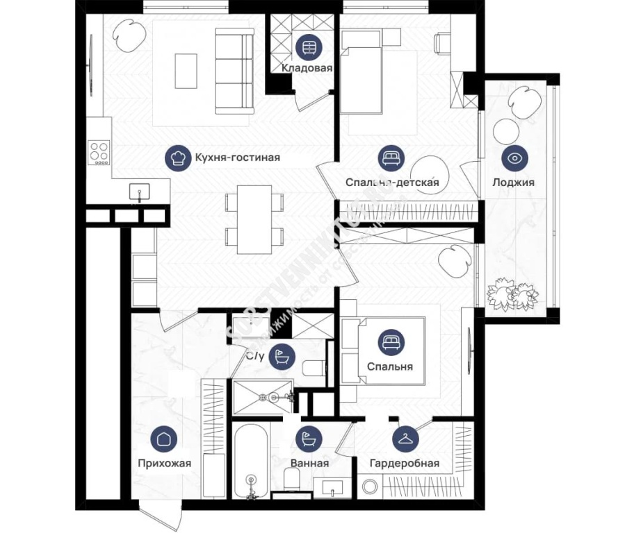 Квартира располагается на 2 этаже 14-этажного монолитного дома в ЖК Резиденции Замоскворечье 2022 года постройки. Застройщик - ООО "Трастком Девелопмент", высота потолков 3 м.