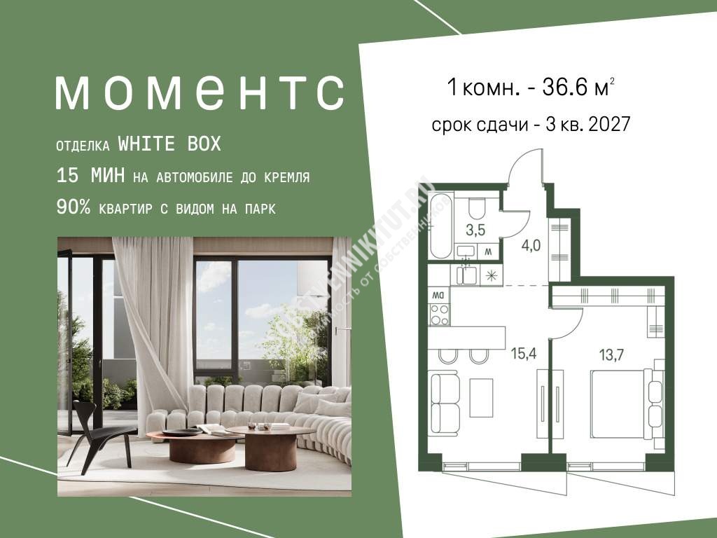 Продажа однокомнатной квартиры 36.6м2 за 23125344 руб на Москва и Московская область на СобственникиТУТ