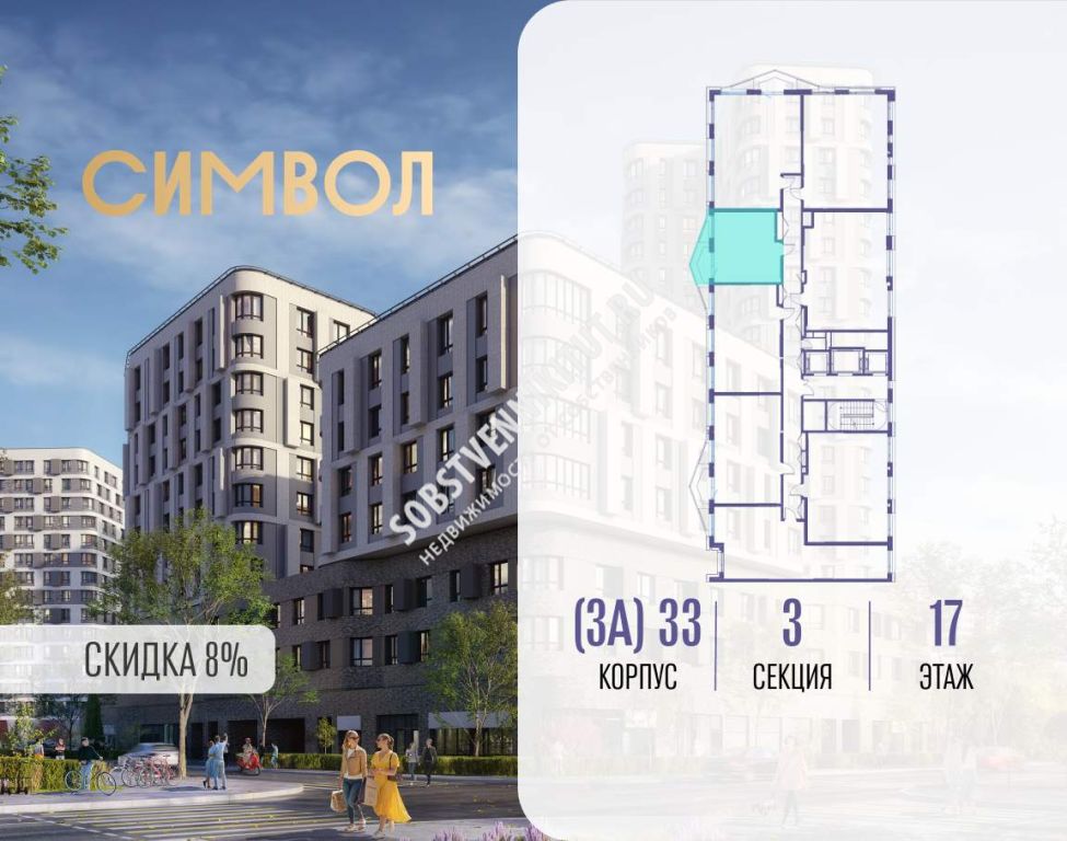 Продается 1-комнатная квартира от застройщика: общая площадь 36.60 м, жилая 13.80 м, кухня 12.60 м, 17-й этаж, жилой квартал «Вдохновение», корпус 33 (секция 3) . Срок сдачи: 4 квартал 2027 года.