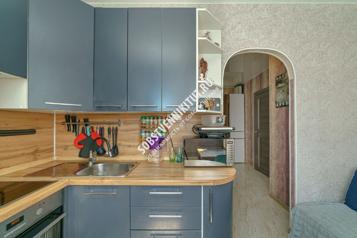 В квартире остается кухонная мебель, техника, холодильник, стиральная машина, шкаф, детская мебель.