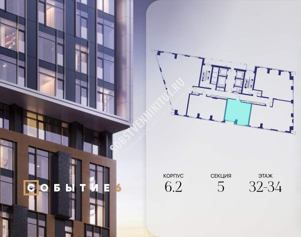 Продаётся 1-комнатная квартира от застройщика: общая площадь 38.80 м, жилая 14.90 м, кухня 16.00 м, 32-й этаж, жилой квартал «Событие-6», корпус 2 (секция 5) Срок сдачи: 4 квартал 2029 года.