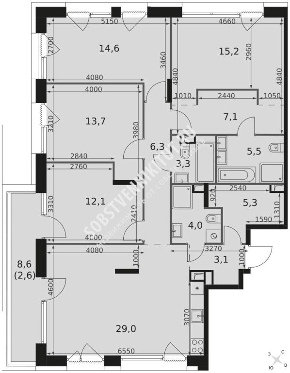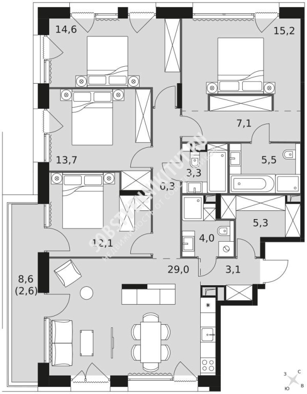 Продается 5-комн. квартира, площадью 122.3 кв.м.