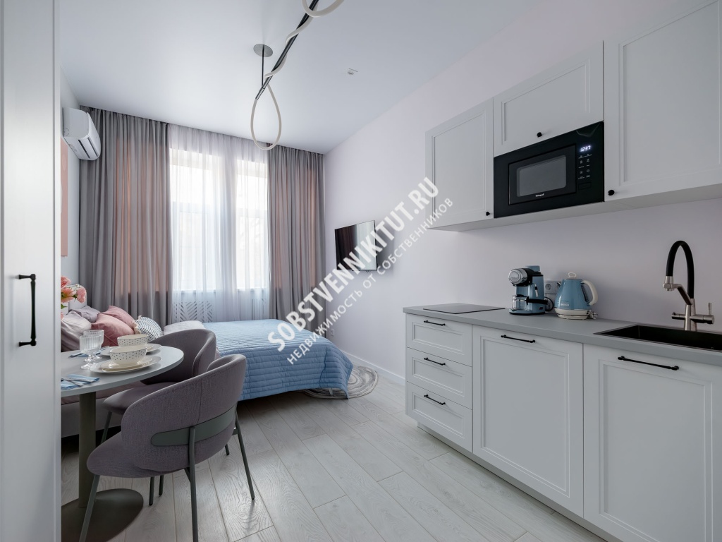 Студия 21 м2 в историческом центре Москвы. Улица Большая Татарская, дом 20, строение 2. Выполнен новый дизайнерский ремонт с полной заменой всех коммуникаций. Высокий уровень шумоизоляции — 62 Дб (уровень банковских переговорных). Дом расположен внутри Садового кольца, в тихом районе, пешая доступность метро.