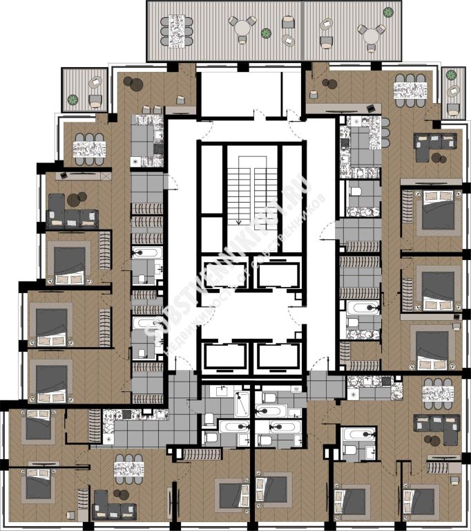 Квартиры с просторными террасами - выход на свежий воздух прямо из дома, гармония природы и городской роскоши.