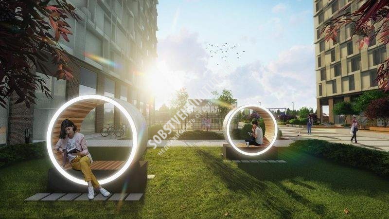 Закрытый двор без машин обеспечен круглосуточной охраной и системами контроля доступа. Двор создан как ландшафтное продолжение окружающих природных парков и зонирован для различных видов отдыха, детских игр, занятий спортом.
